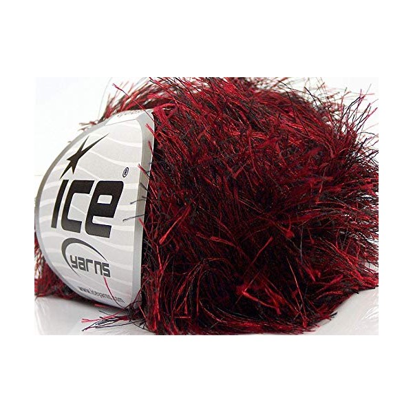Red Black Extra Long Eyelash Yarn Ice Luxurious Fun Fur 50 Grams, 38 Yards