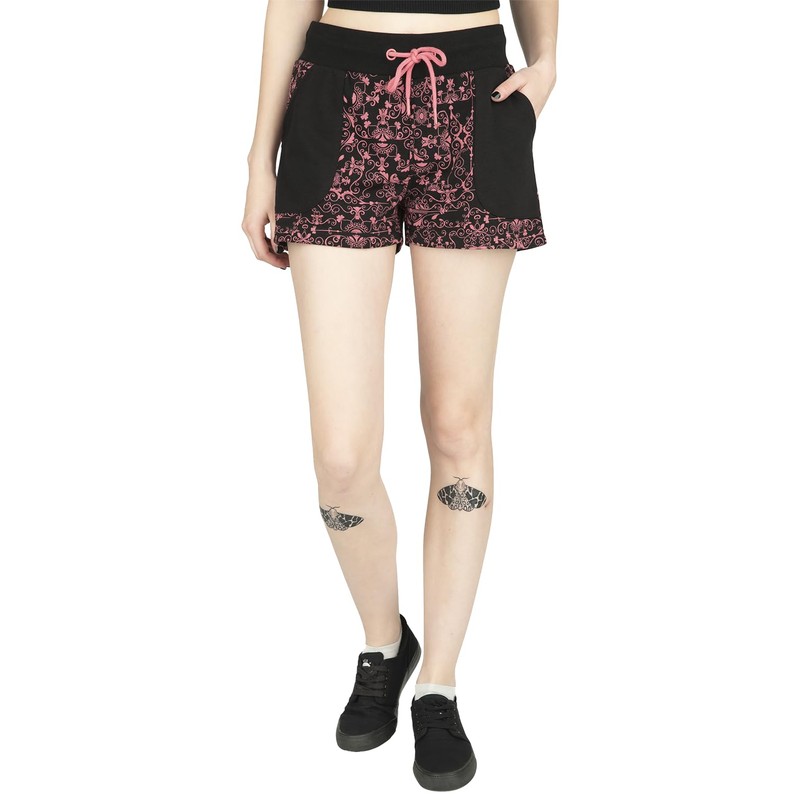 RED by EMP Women's Black/Pink Shorts with Pattern, black