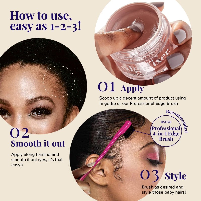 - Keep your edge in check with maximum hold Edge Fixer. Set your style and enjoy long-lasting moisture and shine all day, for all hair types