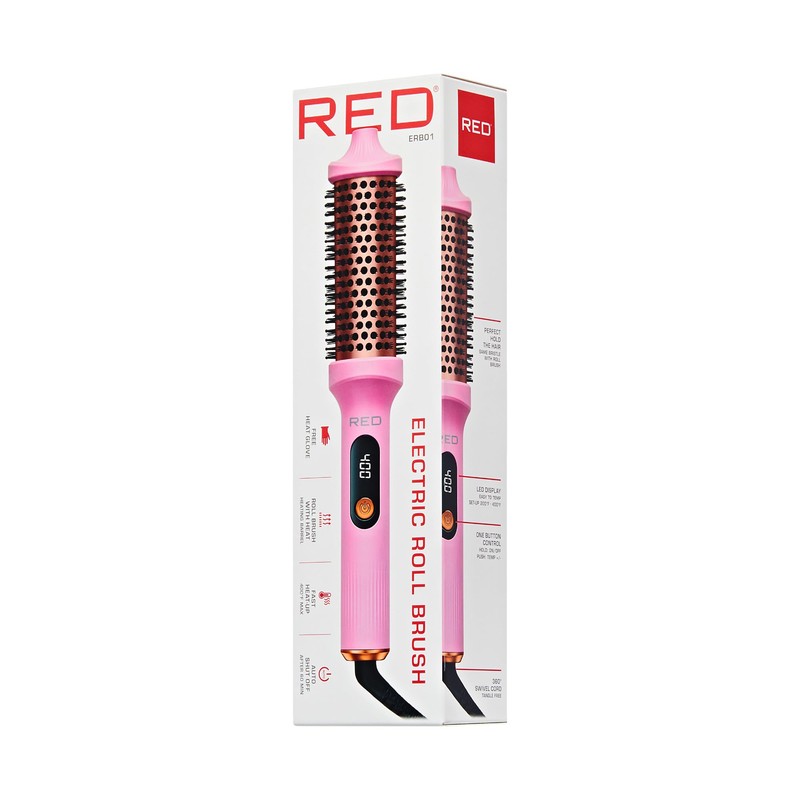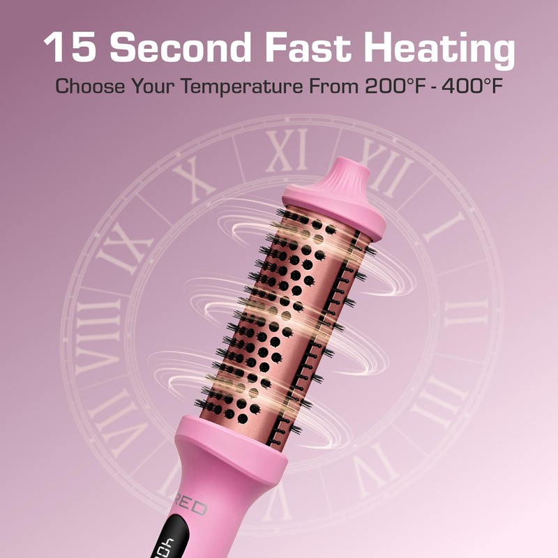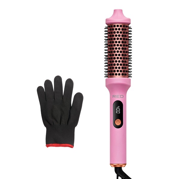 RED by KISS Heated Electric Round Brush 1.5 Inch Fast Heating Curling Iron Roll Brush with LED Display, Max Temperature of 400°F, Anti-Scald Bristles, Swivel Cord, Heat Glove Included