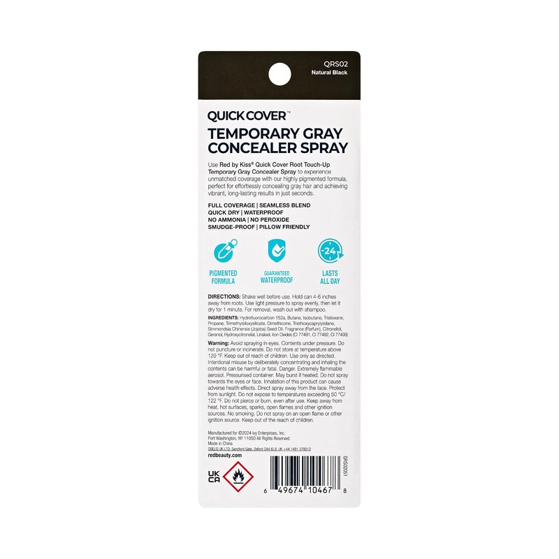 Red by Kiss Quick Cover Root Touch-Up Spray, Waterproof & Smudge-Proof Gray Coverage, Quick-Dry Formula with Jojoba Oil, Lightweight & Travel-Friendly (Natural Black, 2oz)