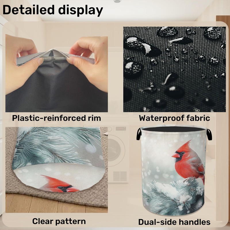 Red Cardinal Foldable Laundry Hamper - Waterproof Fabric Storage Basket with Handles, Clothes Hampers for Laundry,Bedroom,Dorm