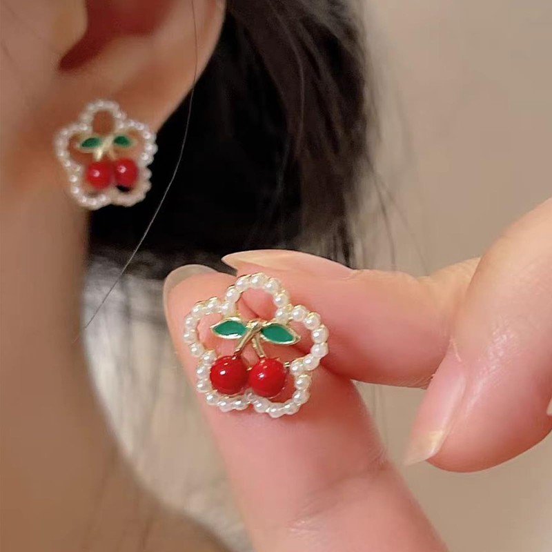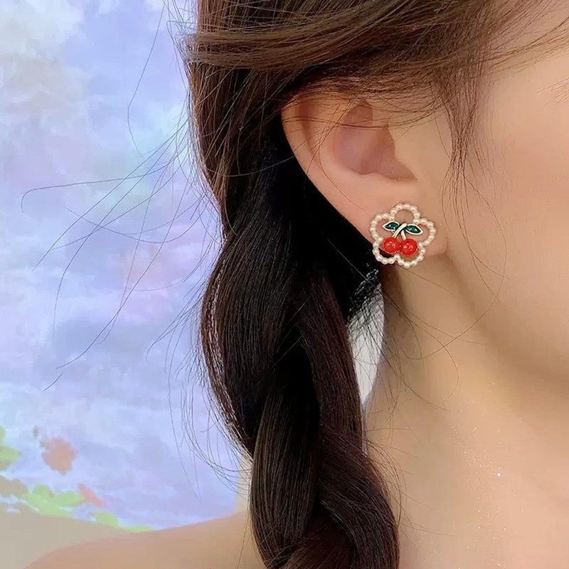 - CHERRY EARRINGS: Adorn your ears with charming cherry stud earrings, featuring red cherries and green leaf accents for a cute look.