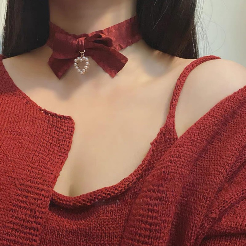 Red Choker Necklace for Women Red Velvet Heart Necklace Bow Necklace Dainty Pearl Heart Choker Necklace Birthday Christmas Gift for Women