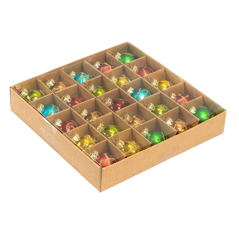 Red Co. Set of 25 Assorted Glittered Glass 1” Round Christmas Tree Mini Ball Ornaments, Rainbow