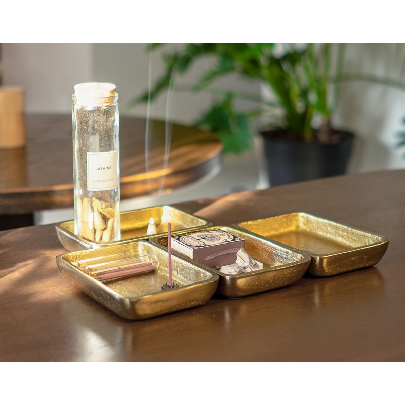 These elegant trays combine functionality with a touch of sophistication, making them a perfect addition to any room. Crafted with a rough textured surface and finished in a luxurious gold tone, these trays offer a stylish solution for organizing and displaying your essentials. Whether used on a vanity for jewelry and makeup, in the living room for candles and trinkets, or in the kitchen for spices and small condiments, these versatile trays enhance the aesthetic of any space. Suitable for various home decor styles, from modern and contemporary to classic and glam, these trays add a chic accent to your decor.