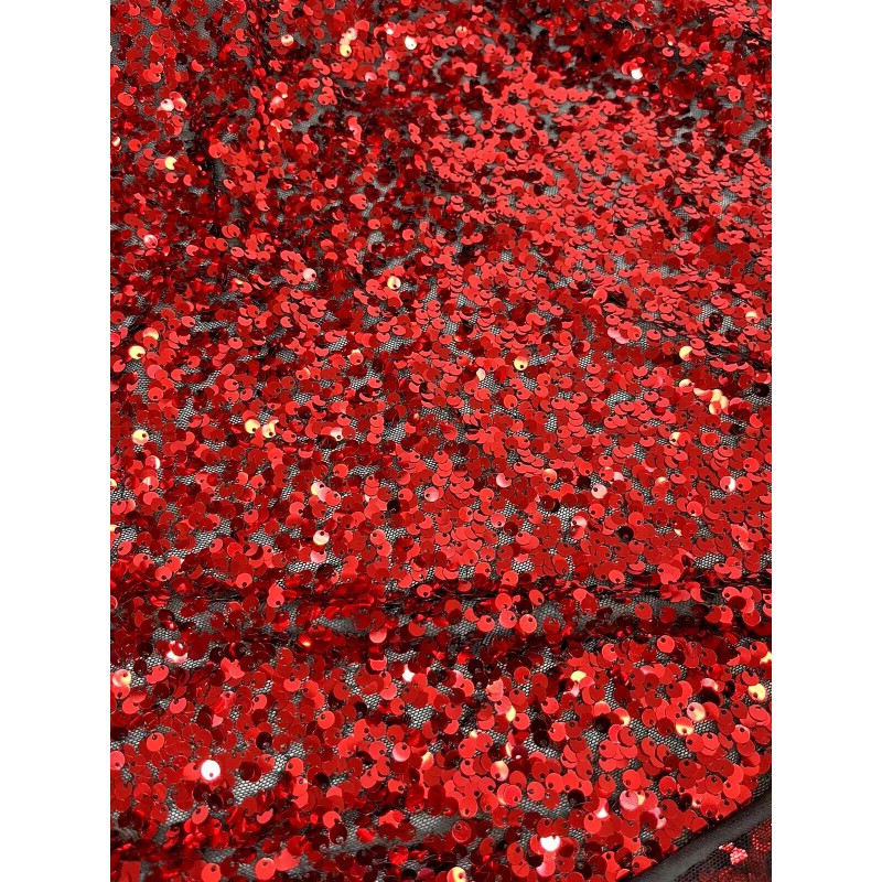 Color : 5mm Red Sequin & Black 4 Way Stretch Mesh