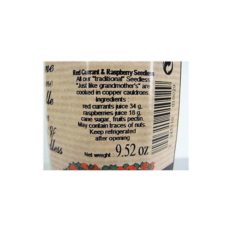 Red Currant and Raspberry Jam (Seedless) Andresy All natural French jam pure sugar cane 9 oz jar Confitures a l'Ancienne, One