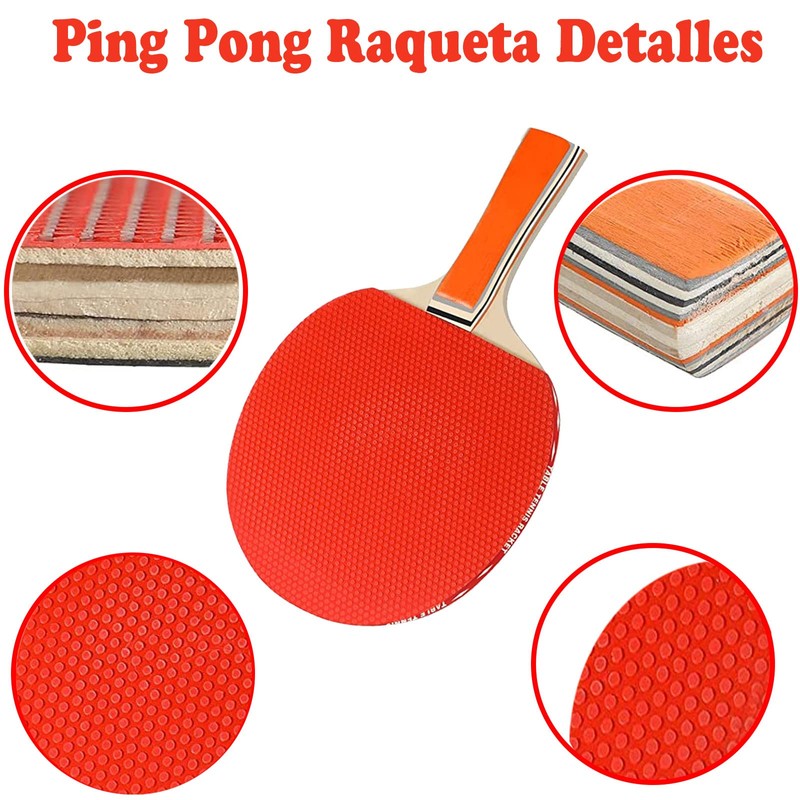 - 【Raquetas y Tenis de Mesa de Calidad Profesional】La raqueta cuenta con madera maciza y una superficie de goma duradera para aumentar el efecto, la velocidad y el control, y la pelota está hecha de resina ABS de alta calidad. La pelota es duradera, muy elástica y rápida, lo que te permite disfrutar de una experiencia deportiva a nivel de juego.