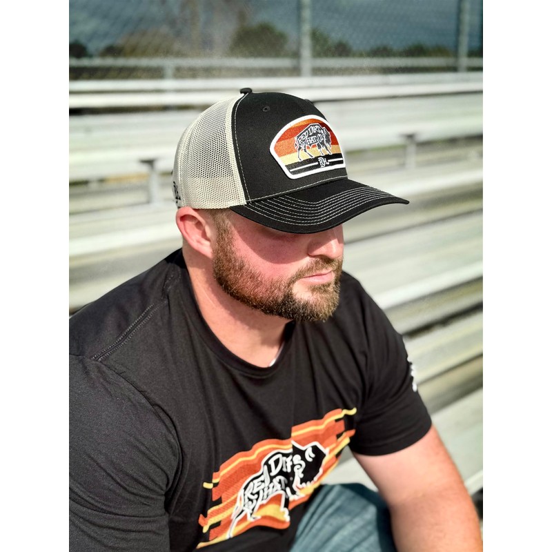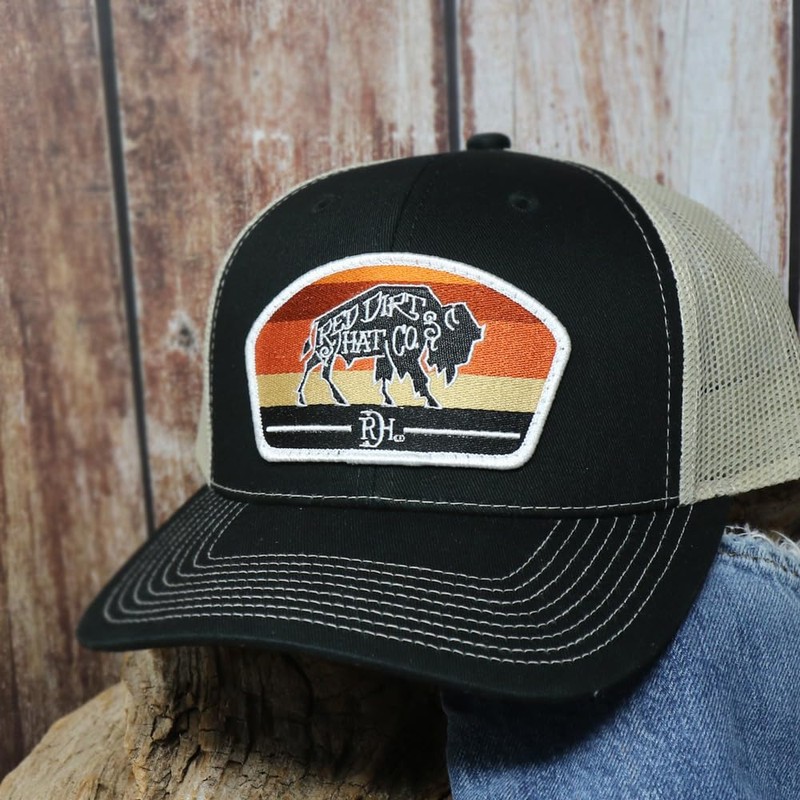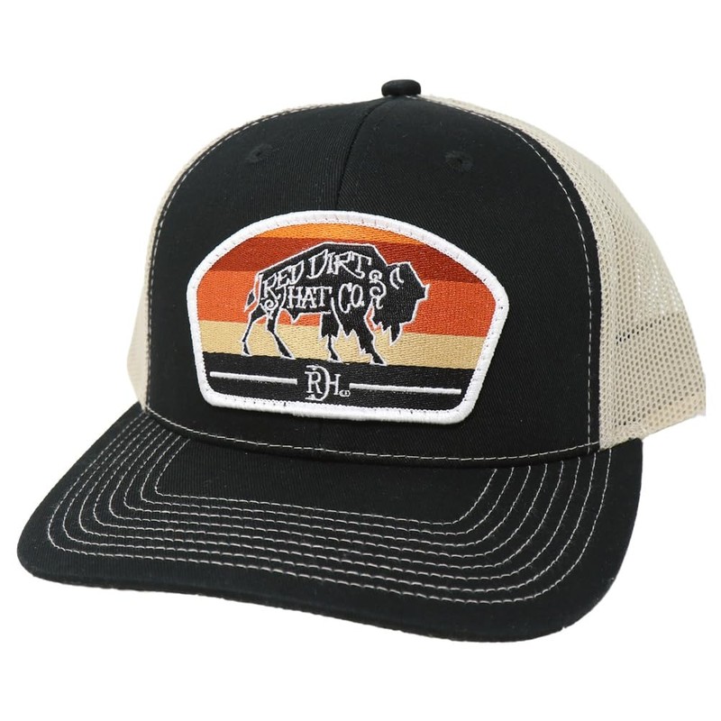Red Dirt Hat Company Buddy 6-Panel Adjustable Snapback Hat, Trucker Cap w/Ventilated Mesh Back & Snap Back Closure, Structured Baseball Cap for Men & Women - Black/Khaki, One Size Fits All