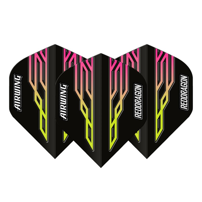 RED DRAGON Airwing Unique Moulded Black, Pink & Yellow Standard Dart Flights 1 Set Per Pack (3 Dart Flights in total)