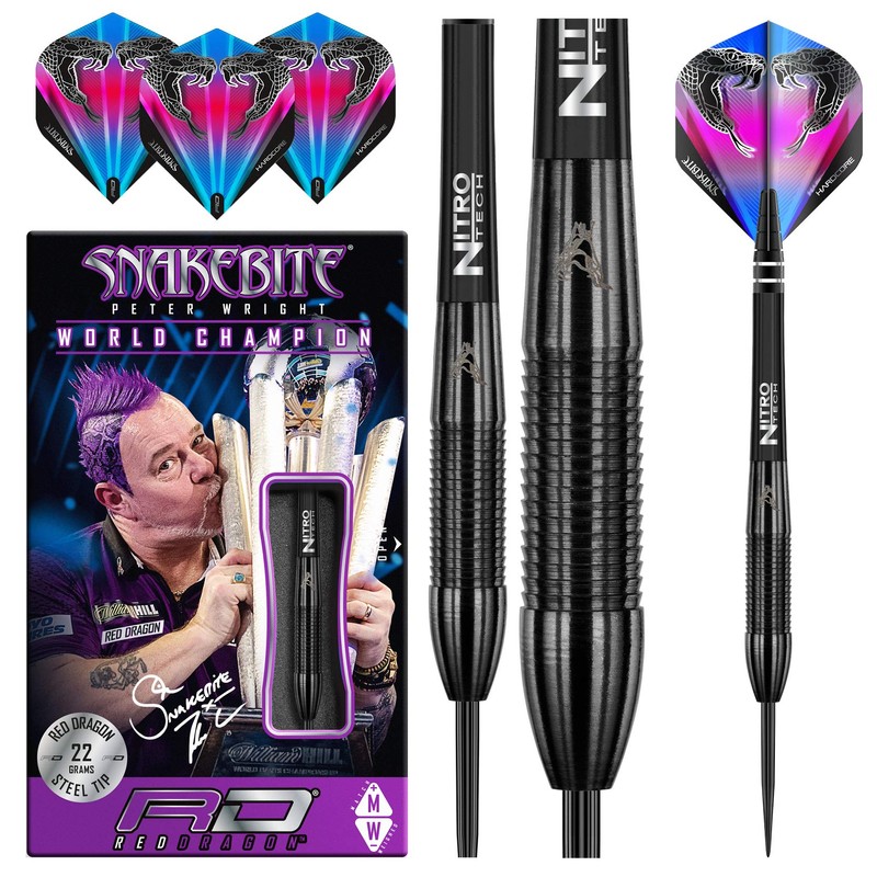 RED DRAGON Peter Wright Snakebite 3: 22g Tungsten Darts Set with Flights and Stems