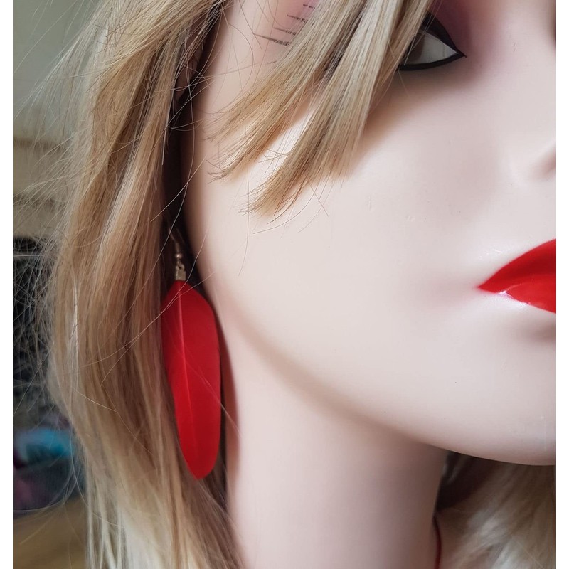 - Our hand crafted feather earrings have been made with a vibrant red goose feathers