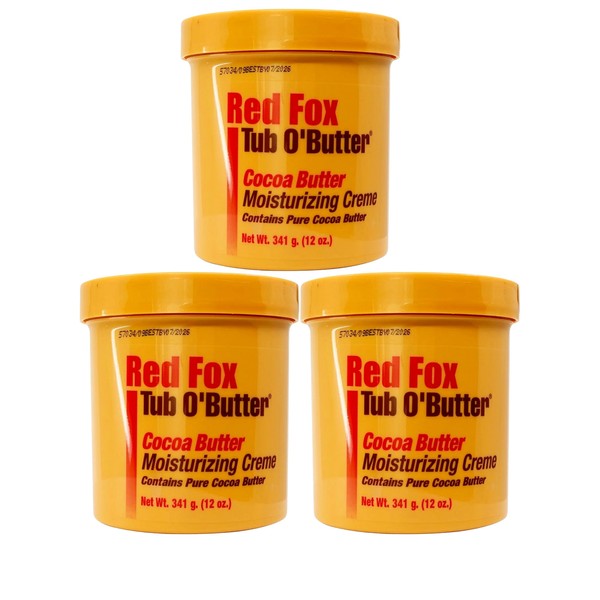 Red Fox Tub O'Butter Cocoa Butter, Moisturizing Creme, 10.5 oz (Pack of 3)