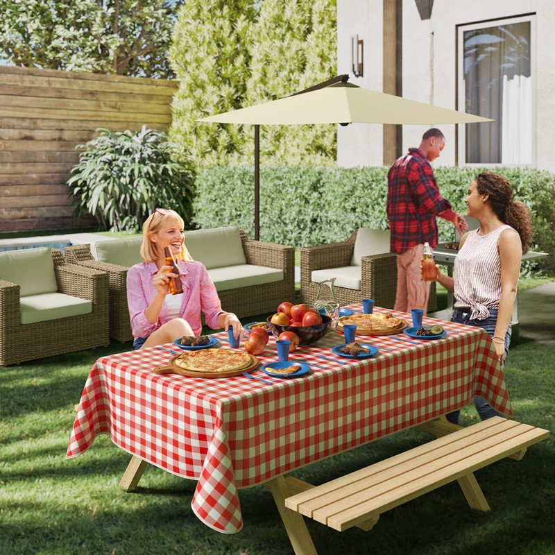 - Reusable Eco-Friendly - This vinyl table cover is an excellent choice for eco-friendly living, as it is reusable. Enjoy the convenience of using it over and over again - perfect for reducing the environmental impact of your next gathering.