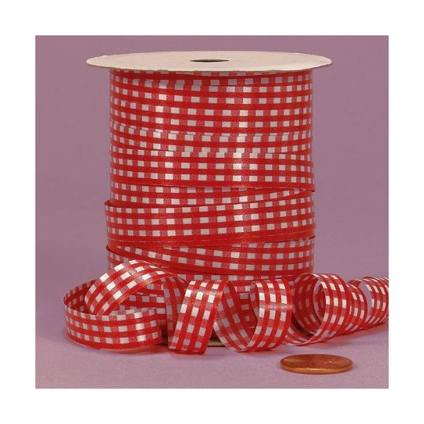 Red Gingham Curling Ribbon, 3/8" X 250Yd
