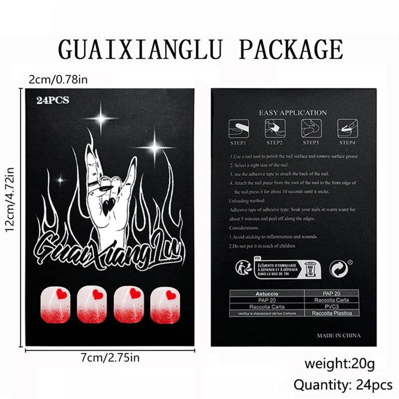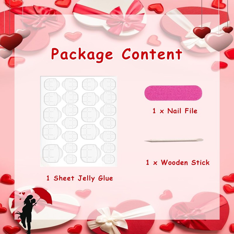 - Package Contents: Package with 24pcs valentines day cute short square bling maroon red glitter gradient french tip press on nails with small love heart design,24pcs jelly glue stickers,1pc nail file,1pc wooden stick.Difference sizes artificial nails can repeated use,you can trim it to any length you want,no need to buy other things,you can get acrylic press on nails