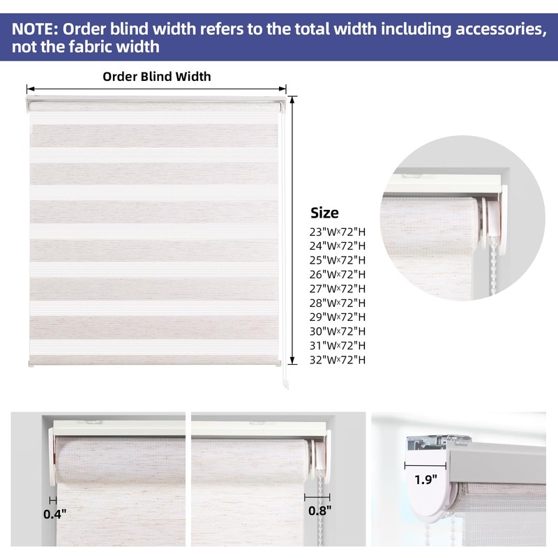 - [PRODUCT DETAILS]- ①Shade(Listing) Size: 35.4"W * 72"H (2PCS). ②Fabric Size: 34.4"W * 72"H (2PCS). ③Maximum Dropdown Height: 72". ④100% Polyester.