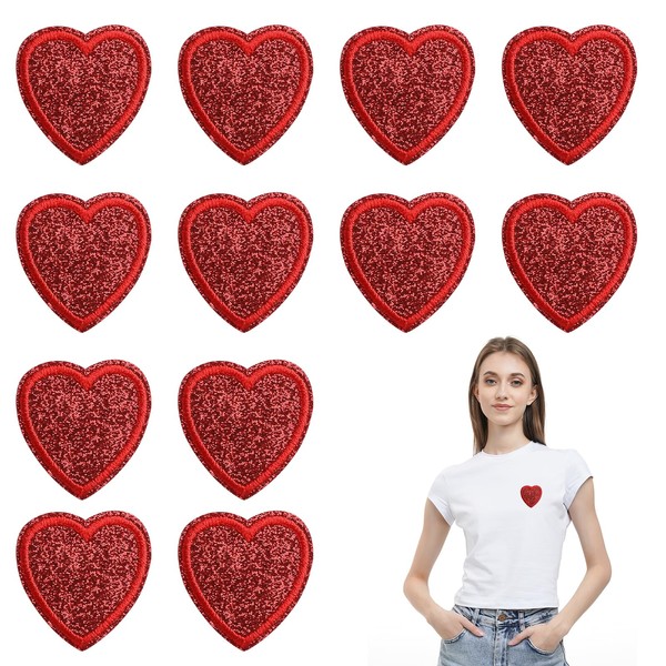 Red Heart Patches Embroidered, Heart Iron-On Patches, Heart Embroidered Patches, Iron-On Transfers, for Clothes, Jackets, Backpacks, Jeans, Hats, Bags (Pack of 12)