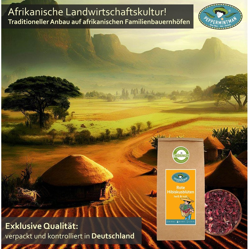 Red hibiscus flowers 100 g - flowers for hibiscus tea without artificial colours - thirst quenching tea - peppermintman