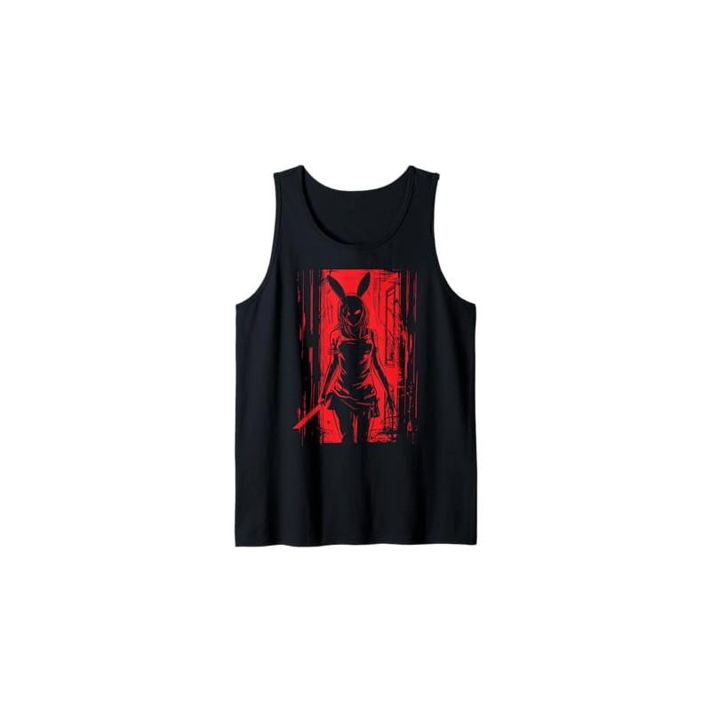 Red Horror Girl Bunny Mask Slasher Alt Goth Creepy Rabbit Tank Top