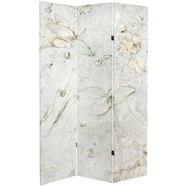 Red Lantern 6 ft. Tall Double Sided Ivory Flowers Canvas Room Divider,