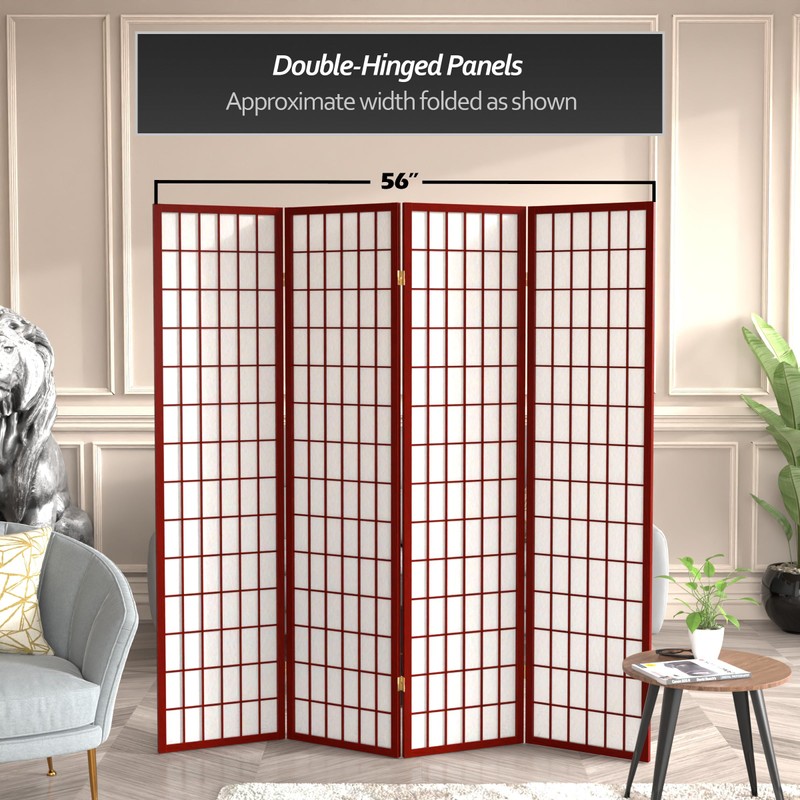 Red Lantern 6 ft. Tall Window Pane Shoji Screen-Rosewood-4 Panels Room Divider