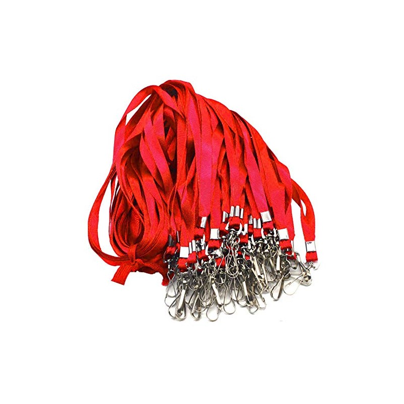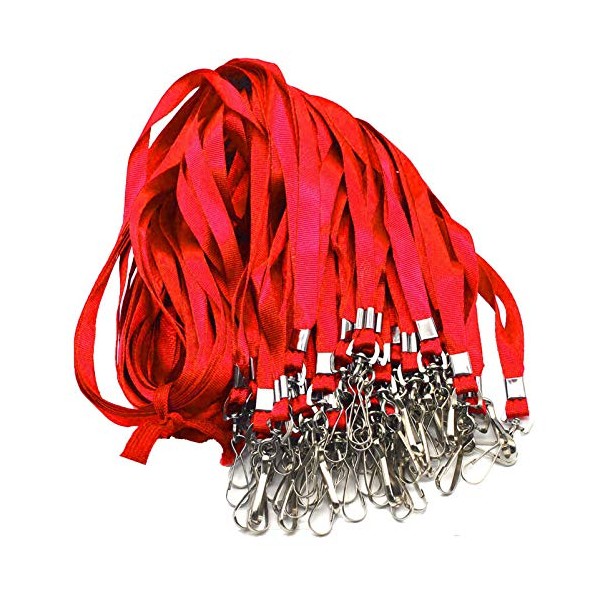 Red Lanyards 100 Pcs Lanyard for Id Badges Flat Lanyard with Badge Clip with J-Hook