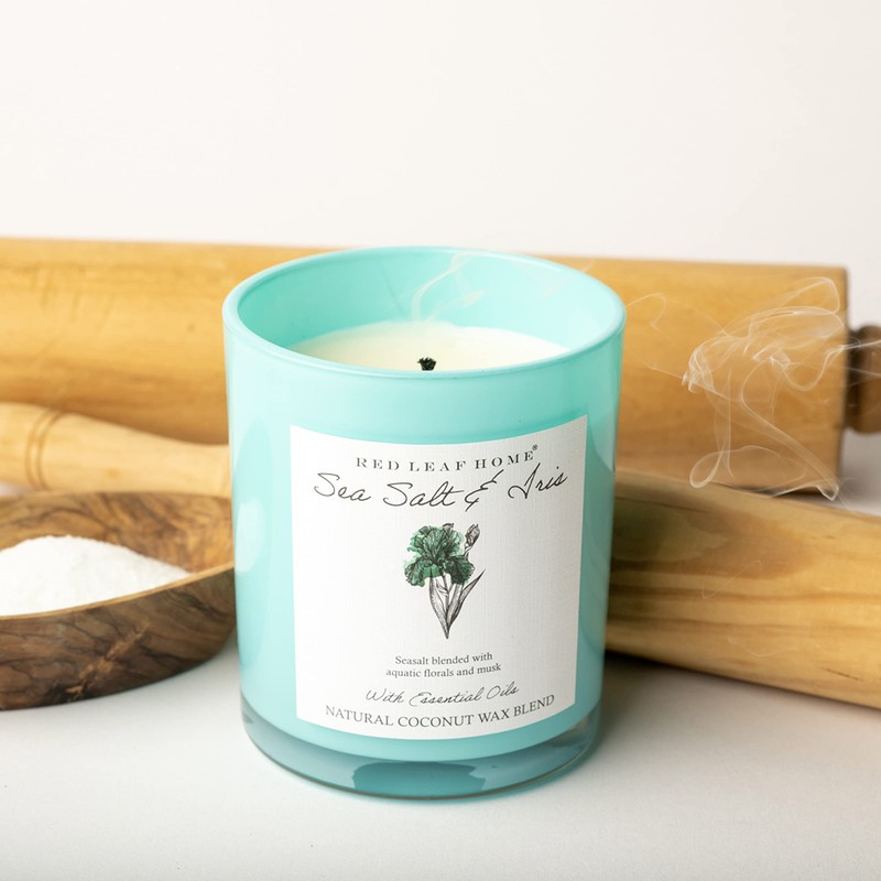 Red Leaf Home Sea Salt and Iris Jar Candle | Wooden Lid, Large | Aromatherapy | Botanical Collection | 15.5oz