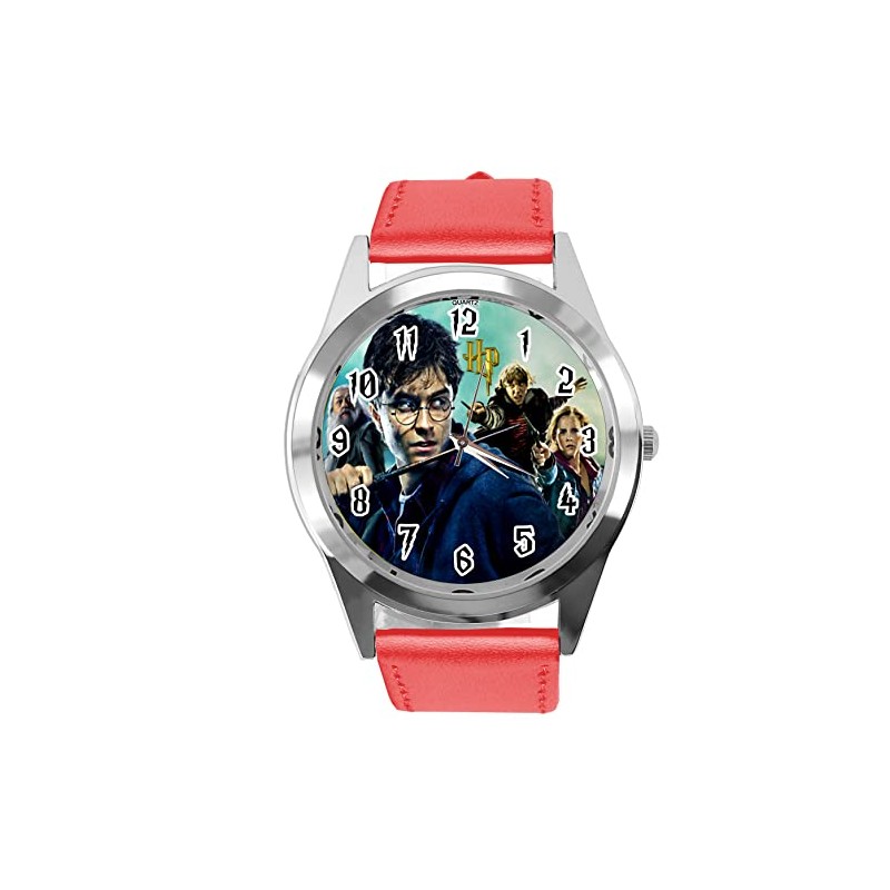 Red Leather Round Quartz Watch for Wizard Fans E3