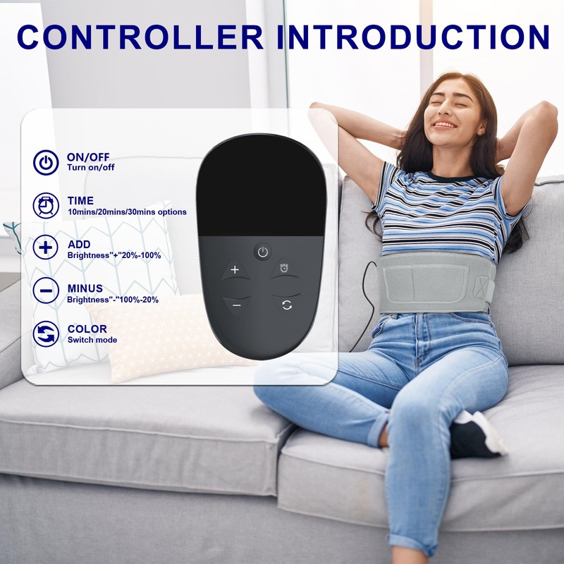 - 【USER-FRIENDLY】It can be worn while sitting, lying down, or exercising.The red light waistband can meet your multiple needs, the controller can set time of 10/20/30 minutes.