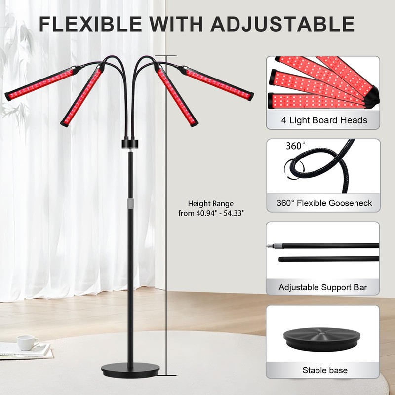 - PORTABLE AND EFFECTIVE RED LIGHT THERAPY: Our red light therapy device features four adjustable light heads on a flexible gooseneck, each head can be easily angled and has brightness settings (1-5) for personalized comfort and light intensity. You will find this red light therapy device a must-have companion for your leisure time