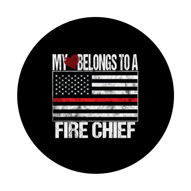 Red Line Flag - My Heart Belongs to a Fire Chief Fireman PopSockets Grip and Stand for Phones and Tablets