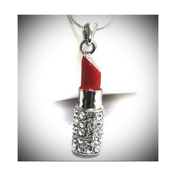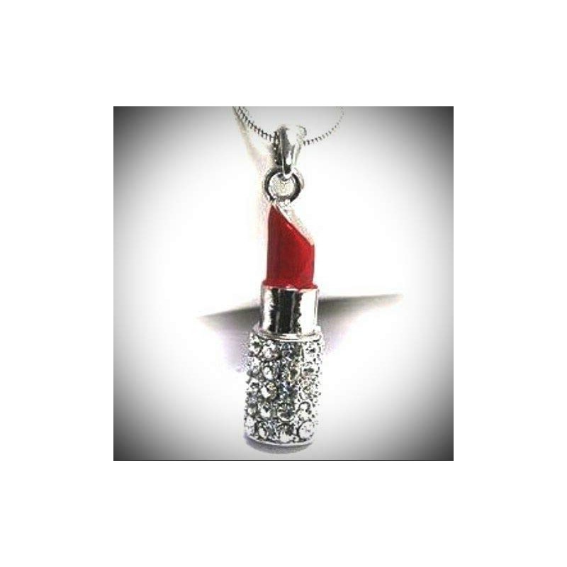 Red Lipstick Pendant Statement Chunky Rhinestone Necklace for Women Clear Crystal Boxed