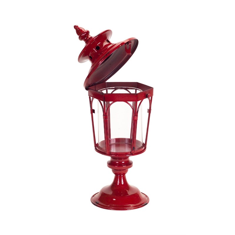 Melrose Lantern, Candle Holder 17-inch Height, Metal, Red, Tabletop Lantern for Outdoor Patio Rustic Home Decor, Candle Holders with Clear Glass