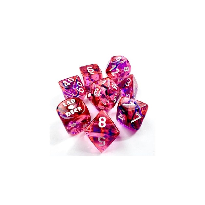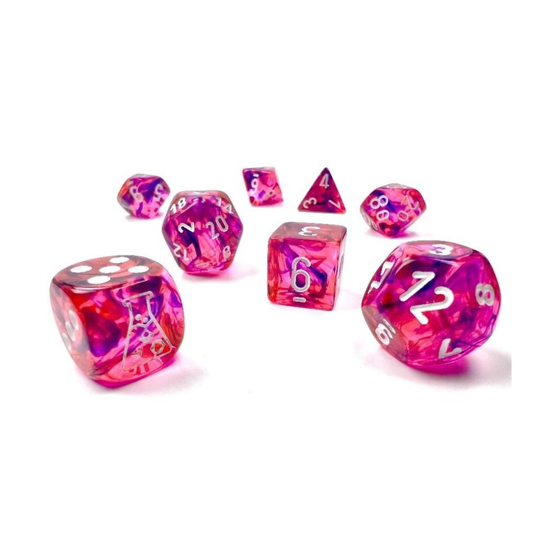 Red Nebula Black Light Special Dice with White Numbers 7+1 Dice Set 16mm (5/8in) Chessex