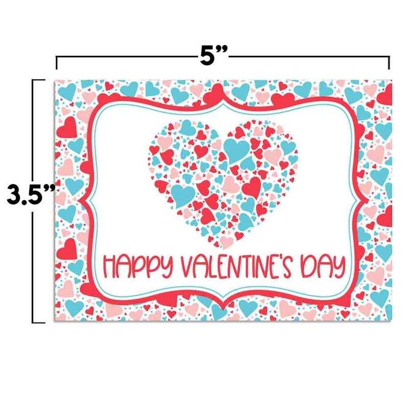 - Awesome Quality: Forget smaller, chintzier cards printed on flimsy paper. At 3.5"x 5" your Valentine Exchange Cards are bigger & sturdier than most. Plus, they're printed on 80# stock for ultra durability. Cards are printed on both sides in full color for extra quality, back side is a matching pattern.