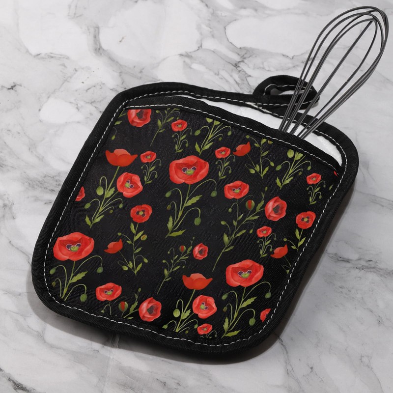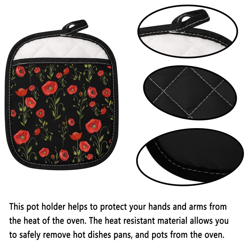 Red Poppy Flower Pot Holder California Poppies Oven Mitt Wildflower Pot Holder Red Poppy Lover Gift (Red Poppy Black)