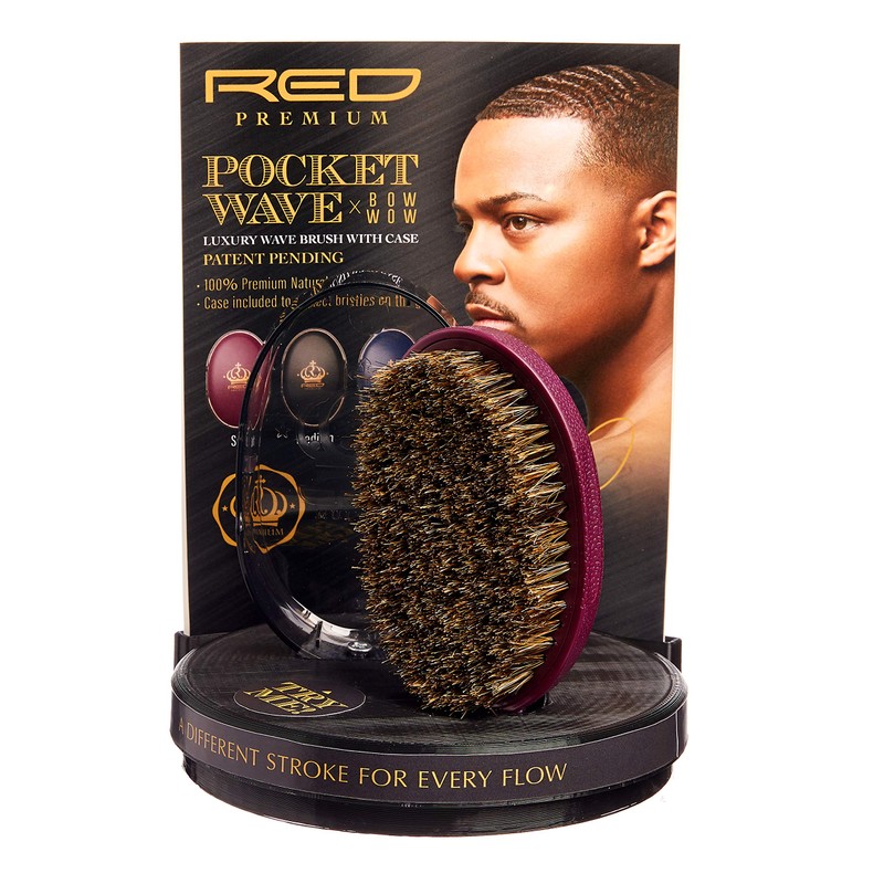 - Red Premium Pocket Wave X Bow Wow Curved Palm Brush is specially made with premium boar bristle