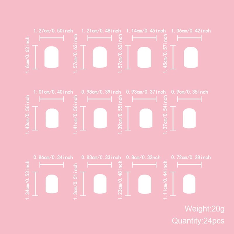 - 【What You Will Get】:A box contains 24 fake nails, a nail file and 24 jelly glues,an wood stick, a set of cleaning cotton,the fake nails are divided into 12 different sizes.The soft elastic and seamless cuticle line conforms perfectly to the nail bed.Nail art stickers in various sizes, convenient for you to choose the nail tips that suits your nails.