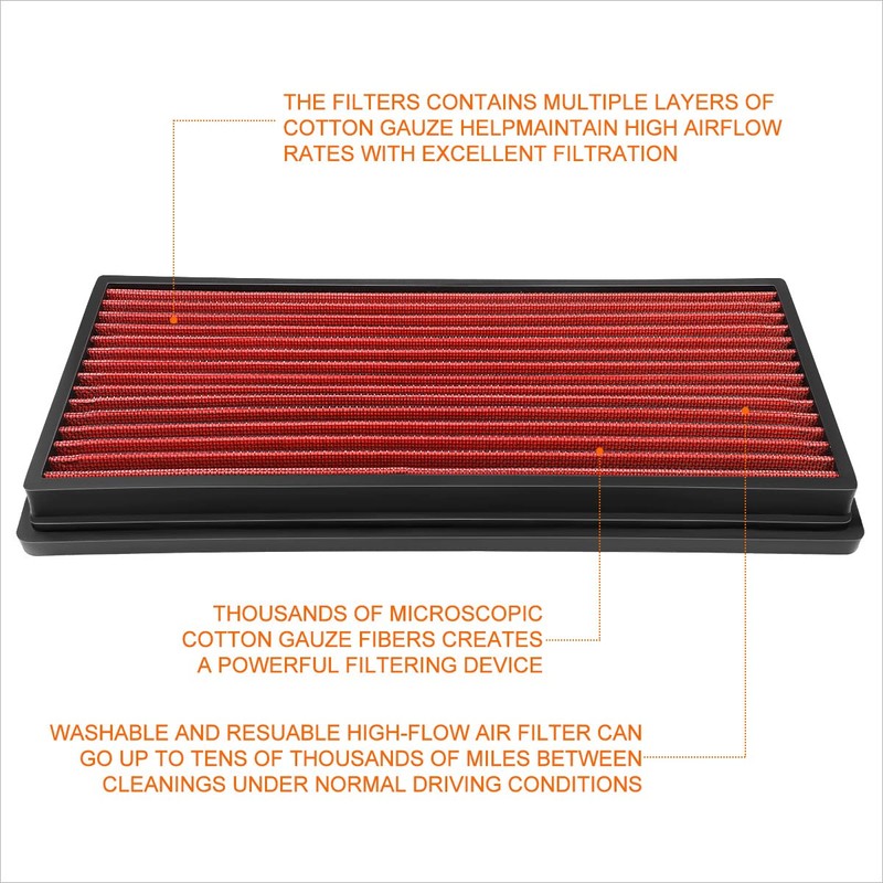 Our reusable Drop in Filter is designed to be the last air filter you buy for the car. It can be cleaned and reused and provides exceptional filtration for your engine. It fits in your OEM air box and replaces the factory filter. Performance is increased as the cotton gauze media filters but does not impede air flow. These filters do not require oil so it does not clog your maf sensor throwing a CEL.