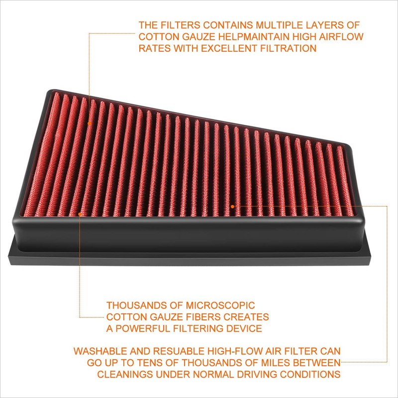 Our reusable Drop in Filter is designed to be the last air filter you buy for the car. It can be cleaned and reused and provides exceptional filtration for your engine. It fits in your OEM air box and replaces the factory filter. Performance is increased as the cotton gauze media filters but does not impede air flow. These filters do not require oil so it does not clog your maf sensor throwing a CEL.