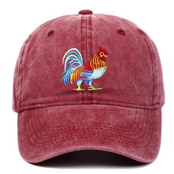 Red Rooster Hat for Men Women Embroidered Chicken Denim Baseball Caps