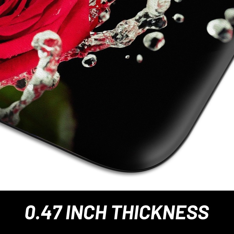 Red Rose Flower Kitchen Rugs Black Anti Fatigue Mats for Kitchen Floor Cushioned Non Slip Waterproof Memory Foam Mat for Bedroom Office Bathroom Sink