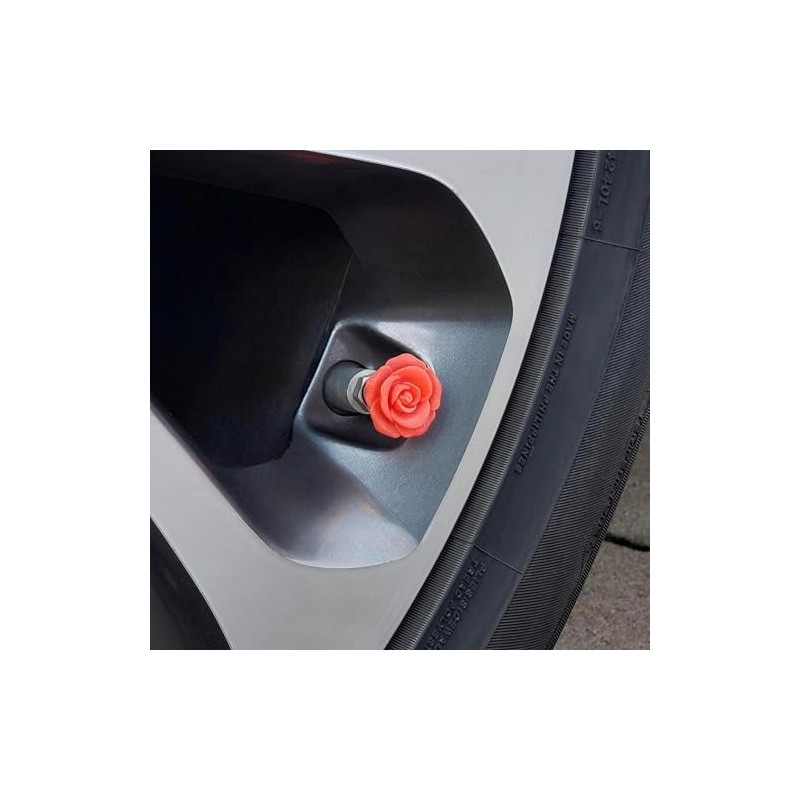 - Universal Fit Tire Valve Stem Caps Durable Plastic Material - Prevents Corrosion on the TPMS Valve Dynamic Shine Singular Unit to Prevent Breakage Rose Shaped Design 4 Piece Set Glimmering Rose: Shimmer Finish, with Reflective Blue Glitter Red JDM Car Accessories