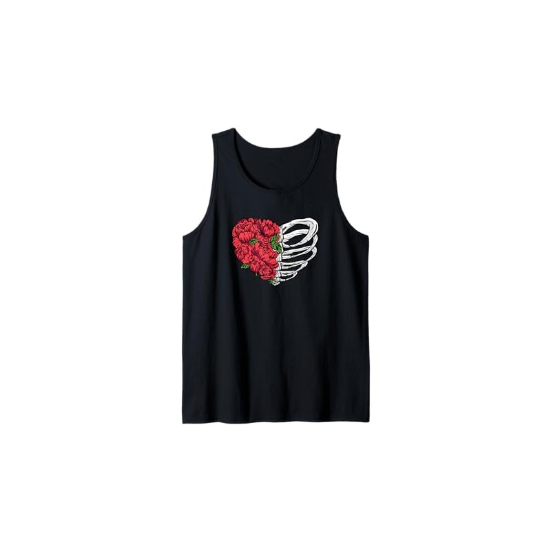 Red Roses Bones Aesthetic Soft Grunge Punk Goth Style Gothic Tank Top