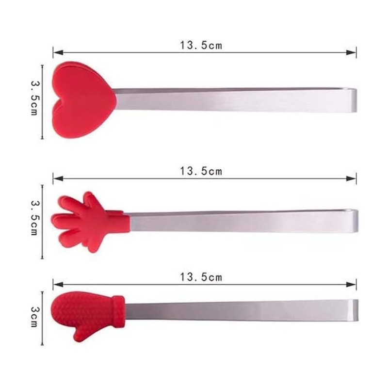 Red Silicone Food Clip,Stainless Steel Snack Food Tongs Nonslip Handles Salad Ice Cube Clamp for Kitchen Accessories Home and Kitchen (Hand Shape)