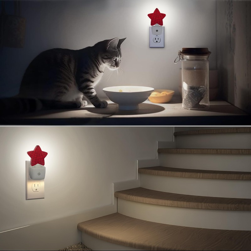 Red Spider Web Night Lights Plug into Wall with Dusk to Dawn Sensor,Lamp for Bedroom Bathroom Hallway Nightlight for Women Girls Kids Gifts
