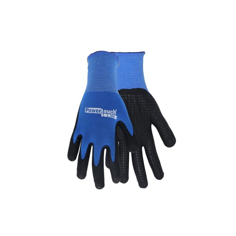 Red Steer Glove Chilly Grip Powertouch 306 Nylon Gloves, Nitrile/PVC Dotted Palm and Fingers, Blue/Black, Sizes S-XL (12, Medium)