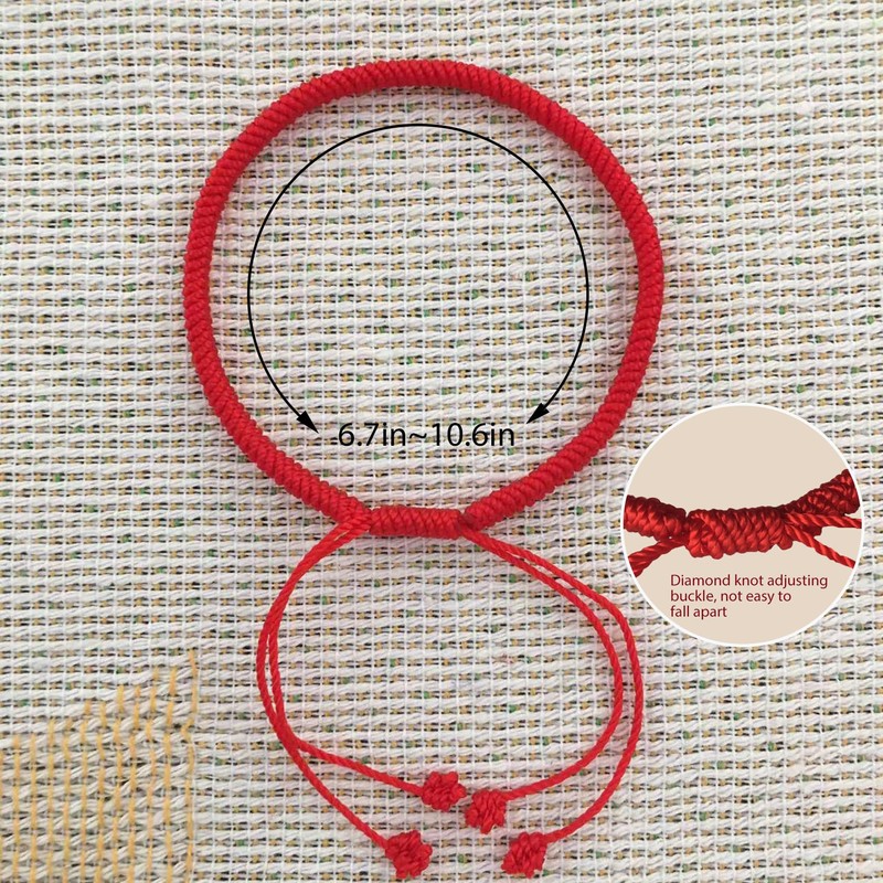 • 【High-quality material, no fading, no deformation】The wire we purchase belongs to high-quality cotton fiber, woven red rope bracelet tight structure, soft shape, bright color, wear for 3 years without fading, no stimulation to the skin. Before weaving, we will choose a small piece to soak in water for 1 to 2 hours to see if there is discoloration, so please feel free to wear.